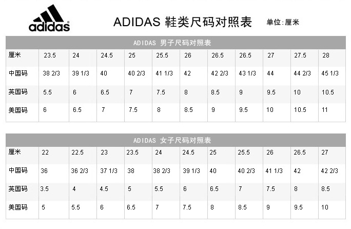 Adidas女装尺码对照表 |